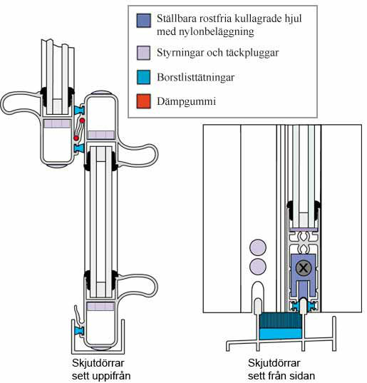 Skjutdörrar och skjutfönster i Ditt uterum kommer löpa lätt på rostfria kullagrade hjul.